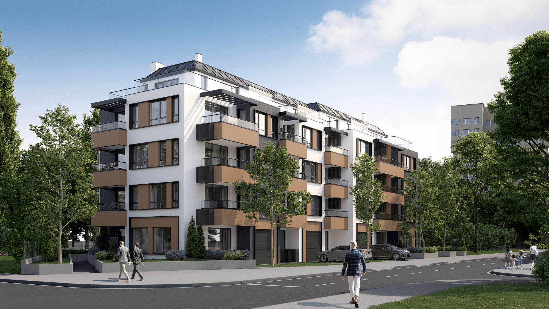 Проектът е решен с един вход и две жилищни секции, всяка с отделно стълбище и два асансьора за по-голямо удобство на живущите. В сградата са проектирани само 25 апартамента – двустайни и тристайни, а на петия етаж са разположени четири разкошни пентхауса, които предлагат прекрасни гледки от обширните си тераси.